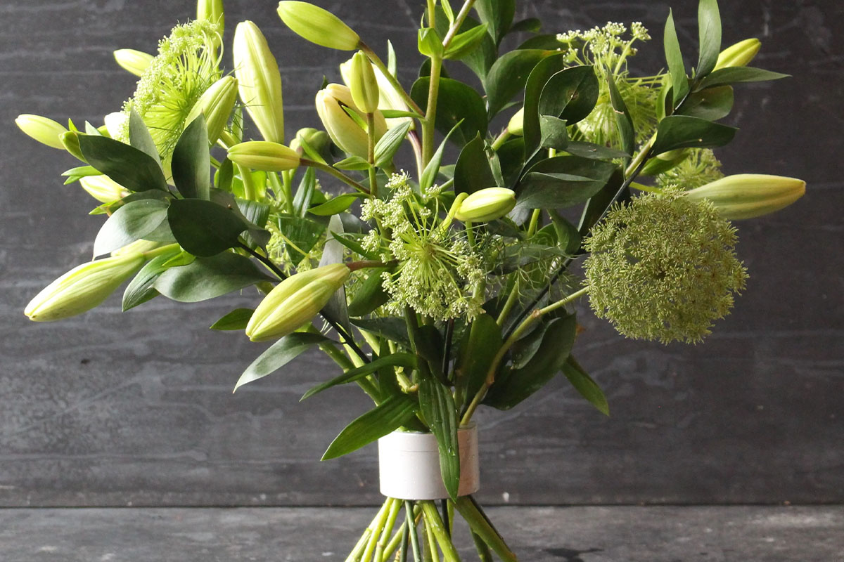 Hanataba, 2-pack i Pearly Silver, är ett stilrent blomsterverktyg som gör det enkelt att skapa vackra, voluminösa buketter med ett naturligt och levande uttryck. Med ett enkelt vrid formas blommorna till ett personligt arrangemang som står stadigt. Lika vackert i vas som på fat med vatten.